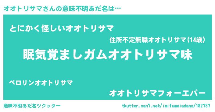 | 欧米人風あだ名 | 『ダニエルオオトリサマ』 |