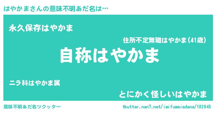 | 伝説のあだ名 | 『古より伝わる勇者はやかま』 |