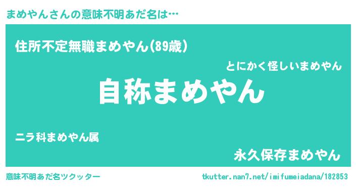 | 男性向けラノベタイトル風あだ名 | 『Re:まめやんから始める異世界生活』 |