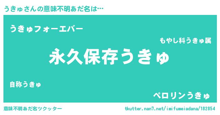 | 男性向けラノベタイトル風あだ名 | 『うきゅという概念が存在しない退屈な世界 』 |
