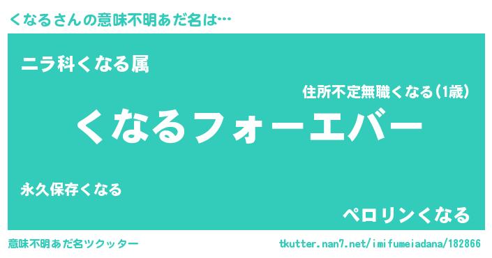 | 男性向けラノベタイトル風あだ名 | 『くなるに滅ぼされるだけの簡単なお仕事です』 |