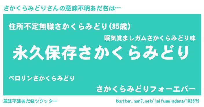 | 胡散臭い通販商品みたいなあだ名 | 『来世でも幸せになれる水素水…その名も「さかくらみどり」』 |