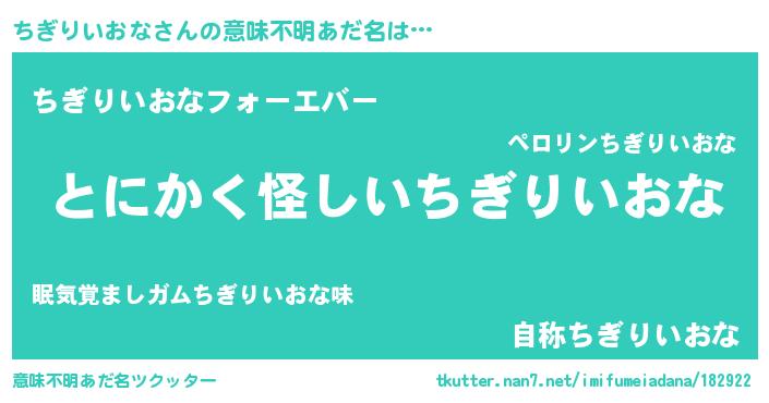 | 肩書あだ名 | 『ちぎりいおな塾長』『ちぎりいおな閣下』 |