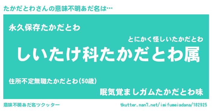 | 男性向けラノベタイトル風あだ名 | 『はたらくたかだとわさま!』 |