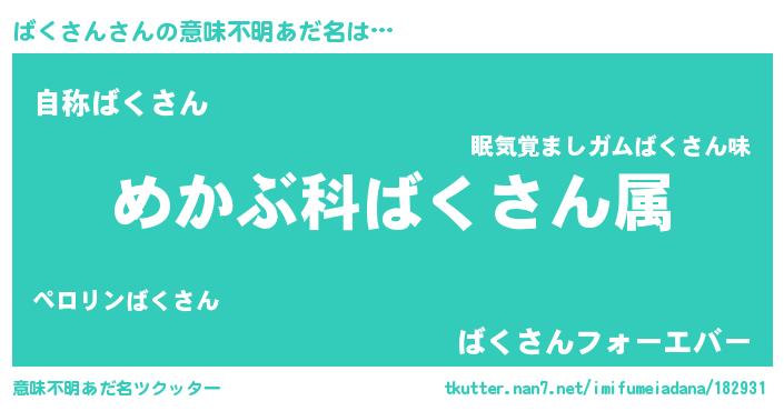 | 料理風あだ名 | 『ばくさんごはん』 |
