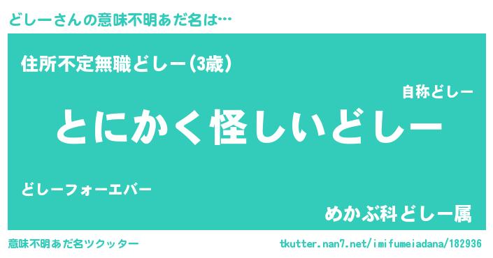 | 女子向けラノベタイトル風あだ名 | 『どしーは平凡を望む』『闇のどしー』 |