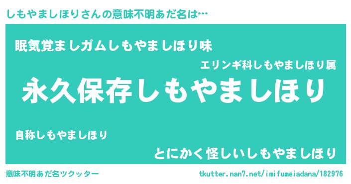 | 胡散臭い通販商品みたいなあだ名 | 『前代未聞の健康食品…その名も「しもやましほり」』 |