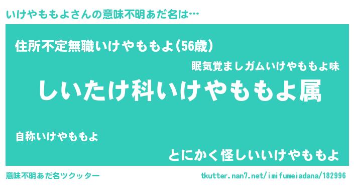 | 料理風あだ名 | 『いけやももよごはん』 |