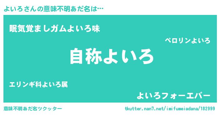 | 欧米人風あだ名 | 『アンジェラ・よいろ』『ダニエルよいろ』 |