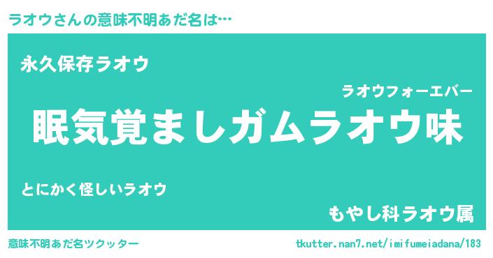 | ヘコむあだ名 | 『ラオウ(爆)』『豆乳』『ラオ太郎』 |