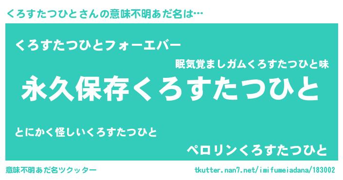 | ヘコむあだ名 | 『くろすたつひと(笑)』『酢こんぶ』 |