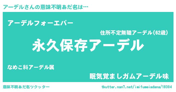 | 男性向けラノベタイトル風あだ名 | 『アーデルという概念が存在しない退屈な世界 』 |
