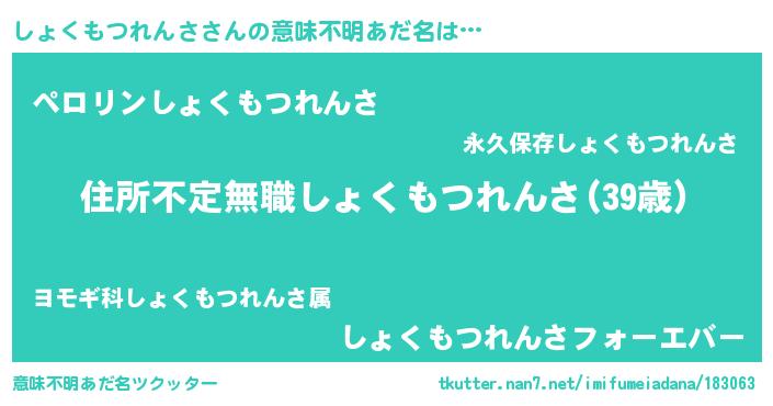 | 男性向けラノベタイトル風あだ名 | 『この素晴らしい世界にしょくもつれんさを!』 |