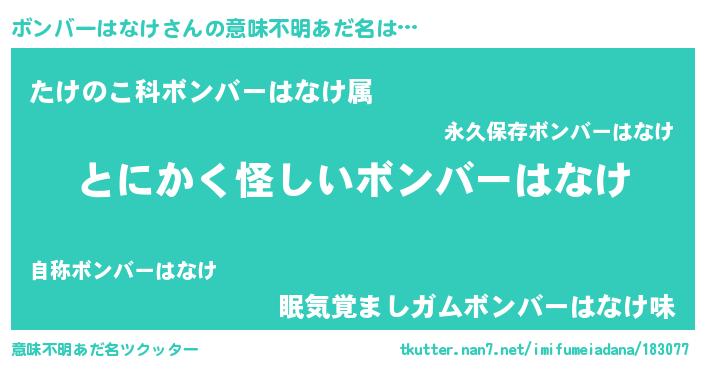 | 女子向けラノベタイトル風あだ名 | 『ボンバーはなけは平凡を望む』 |
