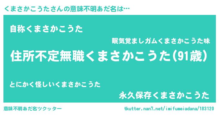 | 男性向けラノベタイトル風あだ名 | 『この素晴らしい世界にくまさかこうたを!』 |