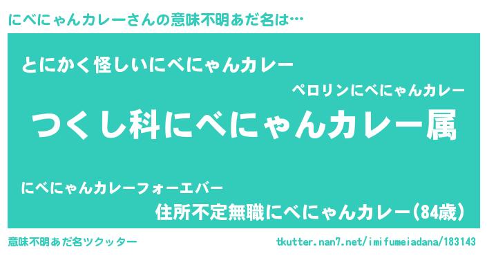 | 女子向けラノベタイトル風あだ名 | 『にべにゃんカレーの玉の輿計画!』 |