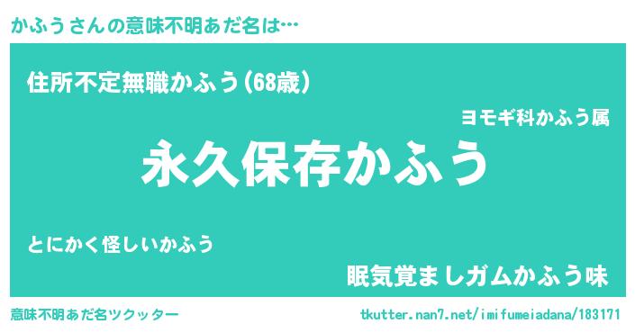 | 胡散臭い通販商品みたいなあだ名 | 『前代未聞の健康食品…その名も「かふう」』 |