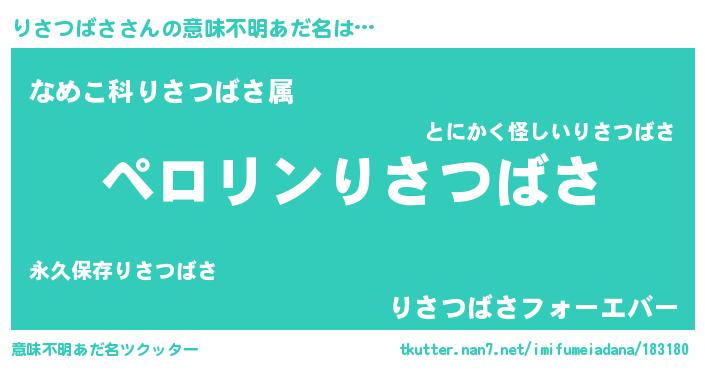 | 欧米人風あだ名 | 『アンジェラ・りさつばさ』 |