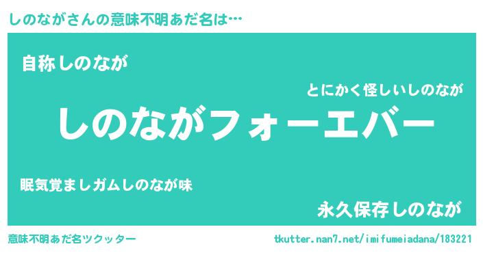 | 女子向けラノベタイトル風あだ名 | 『しのながの雑貨屋さん』『闇のしのなが』 |