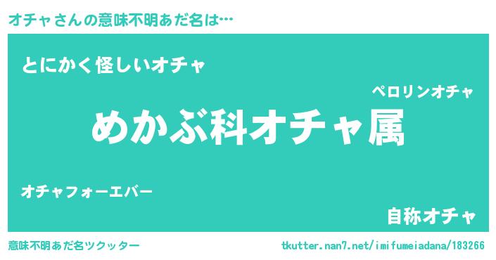 | 男性向けラノベタイトル風あだ名 | 『オチャスレイヤー』『オチャの憂鬱』 |