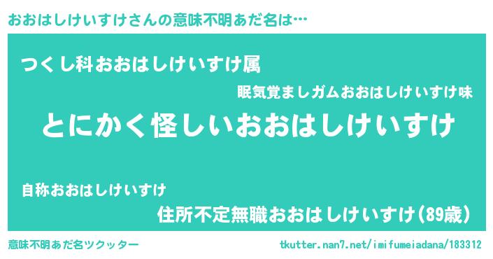 | 男性向けラノベタイトル風あだ名 | 『うちのおおはしけいすけが世界を掌握している!』 |