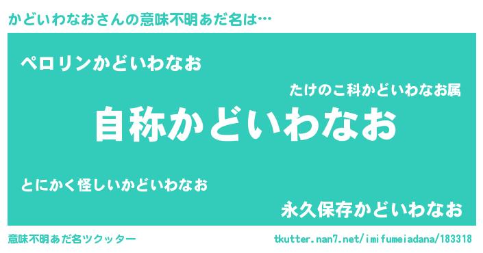 | 欧米人風あだ名 | 『ケンブリッジかどいわなお』 |