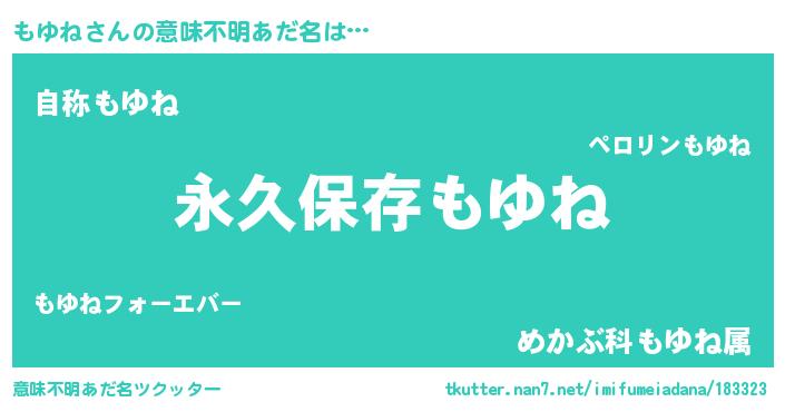 | 男性向けラノベタイトル風あだ名 | 『もゆねという概念が存在しない退屈な世界 』 |