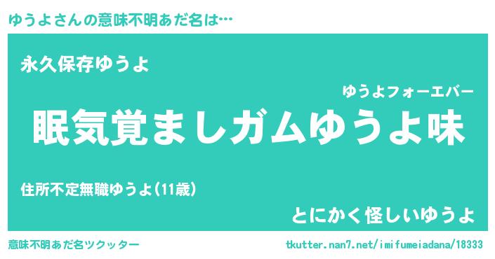 | ヒーロー風カッコイイあだ名 | 『慈愛の使者ゆうよ』『ネオユウヨ』 |
