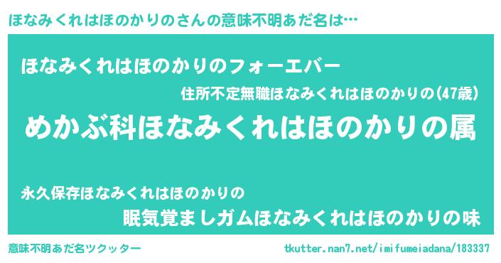 | 料理風あだ名 | 『ほなみくれはほのかりのごはん』 |