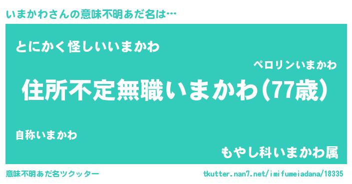 | 男性向けラノベタイトル風あだ名 | 『この素晴らしい世界にいまかわを!』 |