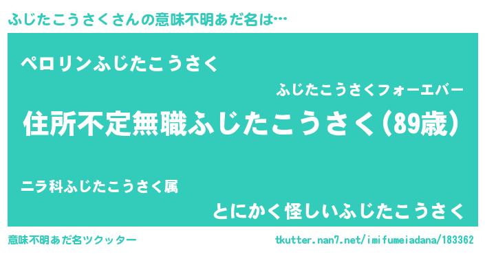 | 男性向けラノベタイトル風あだ名 | 『ふじたこうさくに滅ぼされるだけの簡単なお仕事です』 |