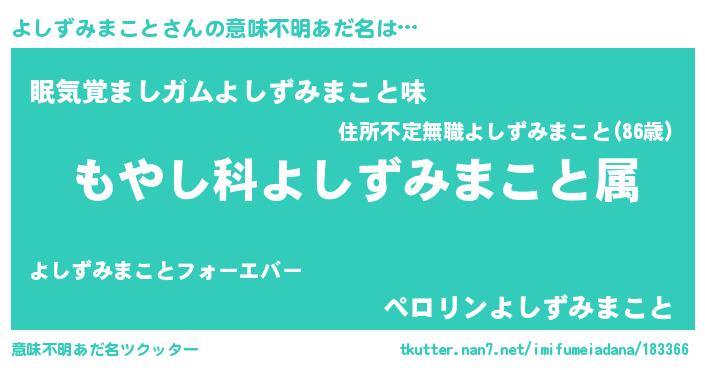 | 男性向けラノベタイトル風あだ名 | 『転生したらよしずみまことだった件』 |