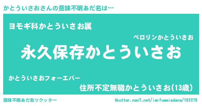| 胡散臭い通販商品みたいなあだ名 | 『前代未聞の健康食品…その名も「かとういさお」』 |