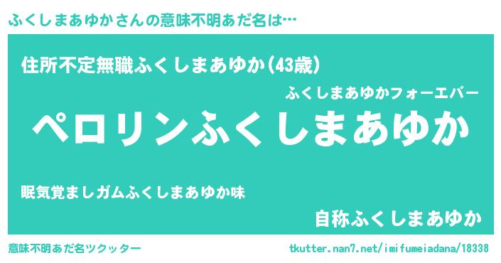 | 胡散臭い通販商品みたいなあだ名 | 『モテモテ間違いなし霊験あらたかなお札…その名も「ふくしまあゆか」』 |