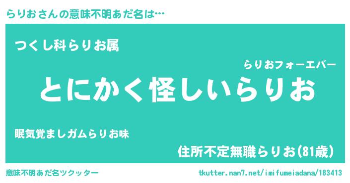 | ヘコむあだ名 | 『らりっ子』『豆乳』『らりお(笑)』 |