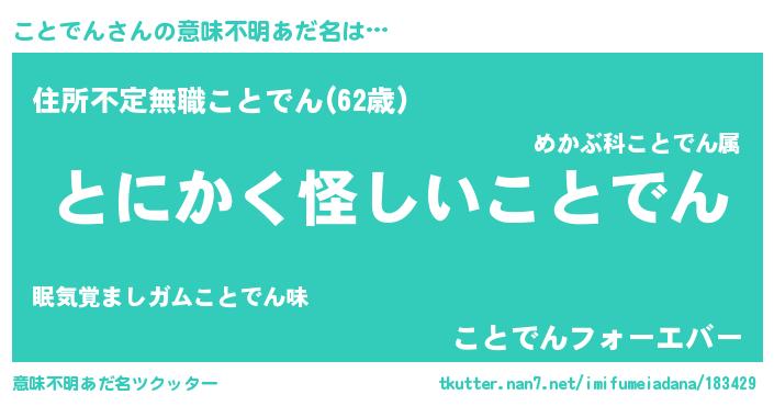 | 男性向けラノベタイトル風あだ名 | 『ことでんの嫁は女の子じゃないと思った?』 |