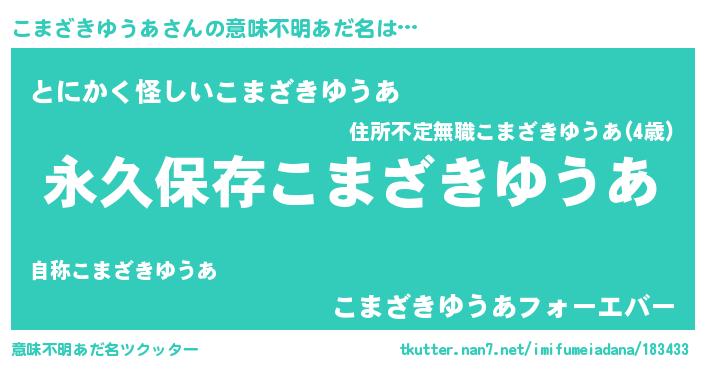 | ヘコむあだ名 | 『こまざきゆうあ(笑)』『こまっぺ』 |