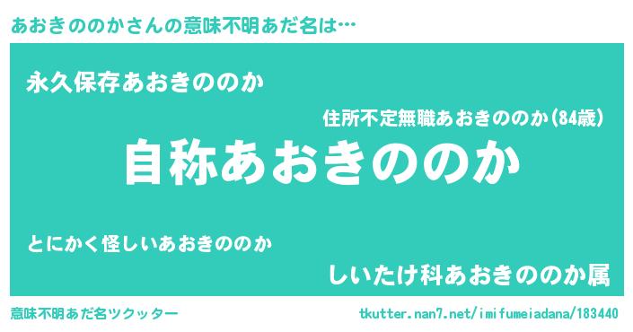 | 男性向けラノベタイトル風あだ名 | 『Re:あおきののかから始める異世界生活』 |