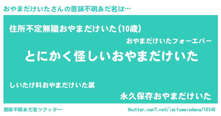 | 男性向けラノベタイトル風あだ名 | 『おやまだけいたの嫁は女の子じゃないと思った?』 |