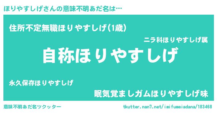 | ヘコむあだ名 | 『ほりやすしげ(笑)』『ほりお』 |
