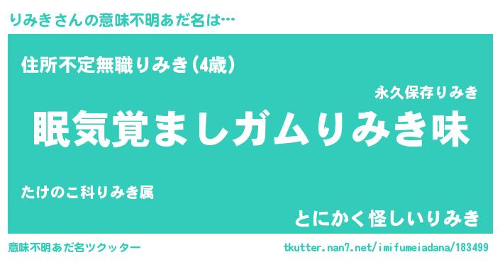 | ヘコむあだ名 | 『りみっ子』『りみき(小並感)』 |