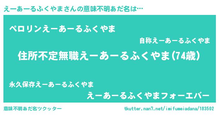 | 男性向けラノベタイトル風あだ名 | 『この素晴らしい世界にえーあーるふくやまを!』 |