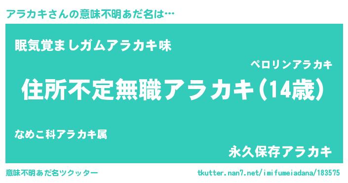 | ヘコむあだ名 | 『アラカキ(笑)』『アラふぇ~』 |
