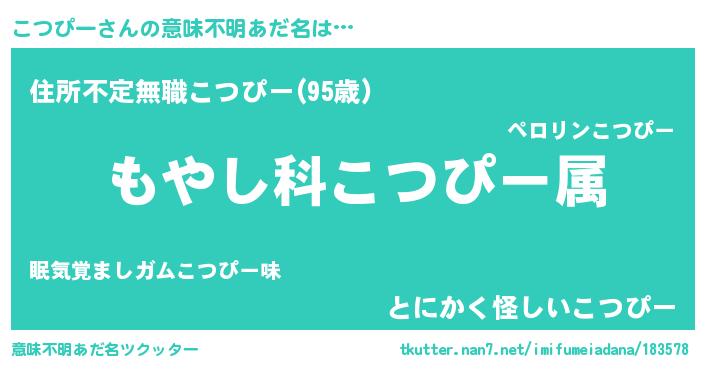 | 男性向けラノベタイトル風あだ名 | 『転生したらこつぴーだった件』 |