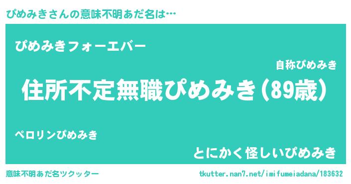 | ヒーロー風カッコイイあだ名 | 『仮面ピメダー』『ウルトラぴめみきマン』 |
