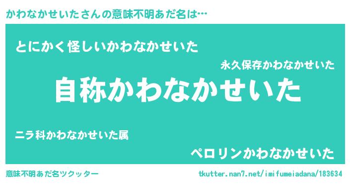 | 女子向けラノベタイトル風あだ名 | 『かわなかせいたなんてお断りですっ。』 |