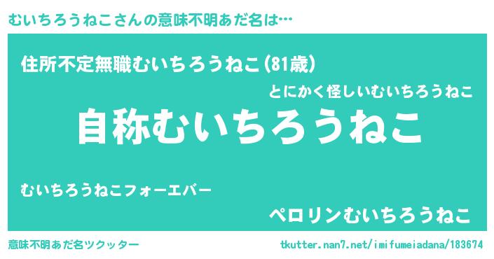 | 欧米人風あだ名 | 『ケンブリッジむいちろうねこ』 |