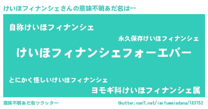 | 欧米人風あだ名 | 『けいほフィナンシェクリステル』 |
