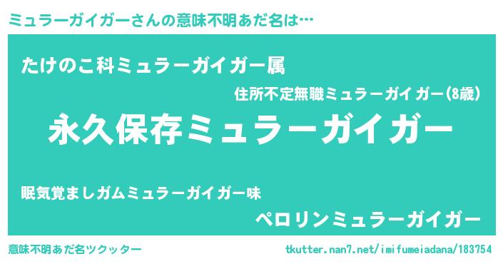 | ヘコむあだ名 | 『ミュラーガイガー(笑)』『ミュにゅー』 |
