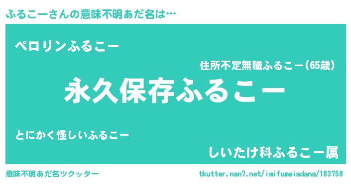 | 胡散臭い通販商品みたいなあだ名 | 『来世でも幸せになれる水素水…その名も「ふるこー」』 |